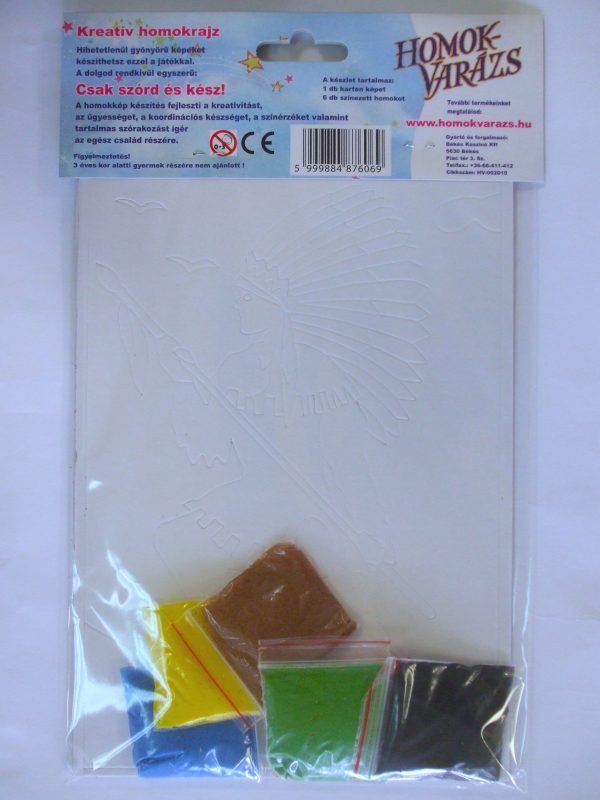 A homok képet egy csomagban kapja, 6 csomag finom szemcsés, különböző színű homokkal, amely az egészségre ártalmatlan. Képformátum: 174 x 247 mm
