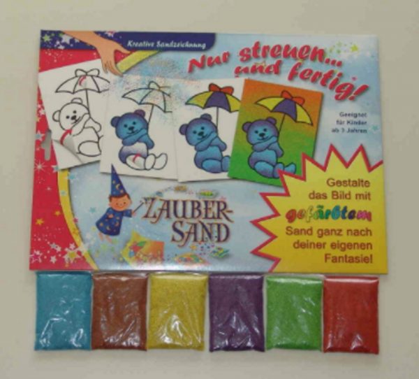 A homok képet egy csomagban kapja, 6 csomag finom szemcsés, különböző színű homokkal, amely az egészségre ártalmatlan.
